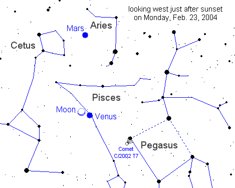 2004年2月23日の月曜日の夕方、月は金星と非常に近い。