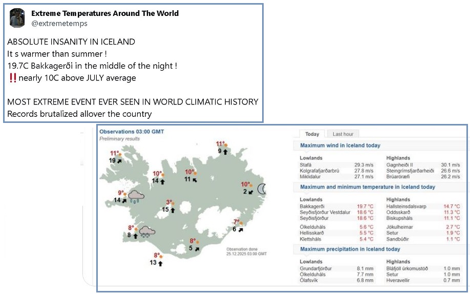 December Heat Record in Iceland: 19.8 Degrees on Christmas Eve