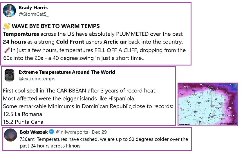 Following the Christmas Day Surprise the Extreme Wobble that had been predicted indeed emerged – extreme temperature swings from record heat to record cold and back again with high wind accompanying these swings.