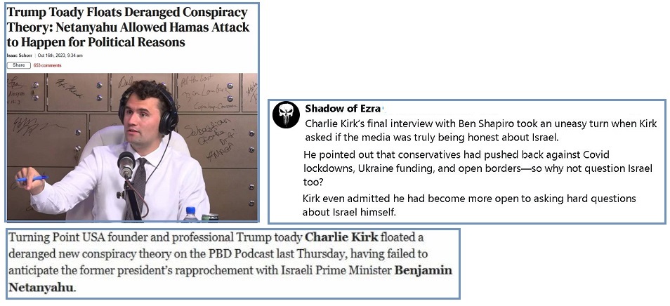 Zionists in control of Israel determined to make Kirk a
